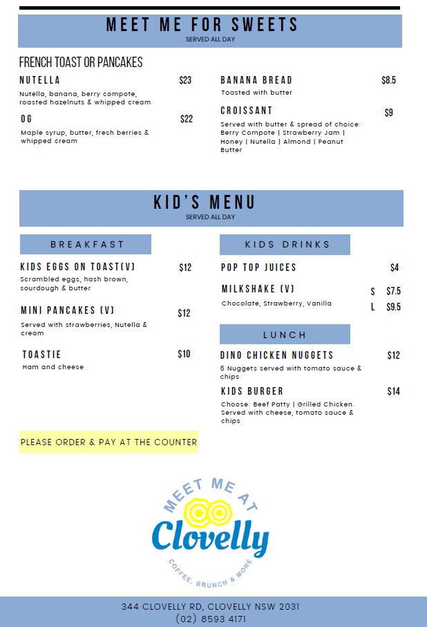 Meet me at Clovelly Menu